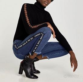 Banda laterale nera con scritta "Caught in the storm, calm in the sea"