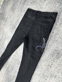 Design moderno con effetto strappato su entrambe le gambe e ricamo decorativo a serpente sulla gamba, per uno stile streetwear.