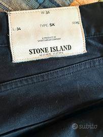 Pantalone Stone Island SK31 skinny originale usato pochissimo. Misure: (A)vita 40 cm circa, (B) cavallo 24 cm circa, (C) coscia 23 cm circa, (E) caviglia 17 cm circa, (F) lunghezza 111 cm circa. Composizione materiali: 97% cotone 3% elastane. Ultima foto per comparare le misure. Vendo 90 euro.