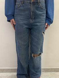 JEANS STRAPPATI STILE 90s WIDE, TAGLIA 38 (VESTE COME UN JEANS TAGLIA 40/42), MARCA BERSHKA, USATI UNA VOLTA MA IN VENDITA PERCHÉ TROPPO GRANDI DALLA VITA, VENDO A 8€