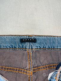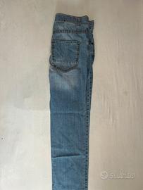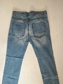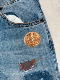 Jeans con strappi e toppe, in denim blu. Sono in ottime condizioni. - Modello a sigaretta - Dettagli in pelle - Perfetti per un look casual