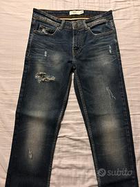 Vendo un paio di jeans strappati da uomo di marca Jake. I jeans sono slim, colore blu scuro e sono tenuti in perfette condizioni come da foto. La taglia è IT46 e USA 32.