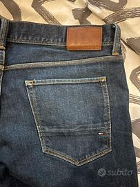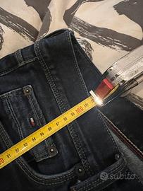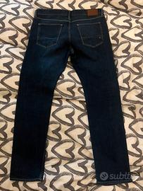 Jeans da uomo blu scuro. Slim fit. Manca etichetta taglia (L). Lunghezza e larghezza vita nelle foto. Solo ritiro, no spedizione.