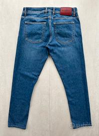 Elegante paio di jeans Sartoria Tramarossa, modello Leonardo, eccellenza del denim sartoriale prodotto in Veneto. Questo modello è celebre per la sua costruzione impeccabile e l’attenzione ai dettagli, offrendo una vestibilità slim fit moderna che non rinuncia al comfort grazie alla qualità superiore del tessuto. Condizioni: 8,5/10. I jeans sono in ottime condizioni generali. Per massima trasparenza, si segnalano due piccoli scolorimenti appena visibili sulla parte anteriore e posteriore della gamba destra e l'etichetta frontale "Murano" staccata da un lato, come documentato nelle foto di dettaglio. Composizione: Cotone giapponese Kuroki 98% Elastan 2% Taglia W34 Misure: Vita: 44 cm Lunghezza totale: 99 cm Lunghezza interna: 75 cm Rise: 24 cm Coscia: 28,5 cm Ginocchio: 20,5 cm Fondo gamba: 17 cm I pantaloni conservano la loro lunghezza e orlo originali (non sono stati accorciati). Prezzo retail 300€ 📦 Spedizione rapida (entro 24 ore) e imballaggio curato. Resto a disposizione per qualsiasi chiarimento o ulteriore foto! #Tramarossa #SartoriaTramarossa #Leonardo #DenimArtigianale #MadeInItaly #KurokiDenim #JapaneseDenim #JeansSartoriali #LuxuryDenim #W34 #SlimFit #Menswear #ModaUomo