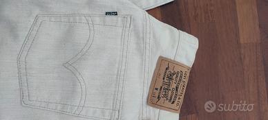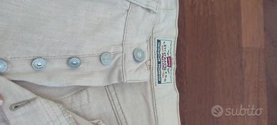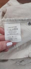 jeans unisex colore panna, ottimo tessuto, nuovo taglia W32 L34 paragonabile ad una taglia44, misure in foto, vita alta con chiusura a bottoni.