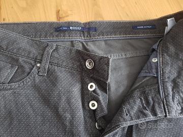 Jeans da uomo della sartoria Boggi Milano, in morbido cotone grigio a micro fantasia geometrica. Taglia 32 (veste circa come una 46). Disponibile a inviare ulteriori foto a richiesta
