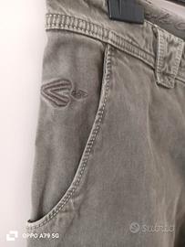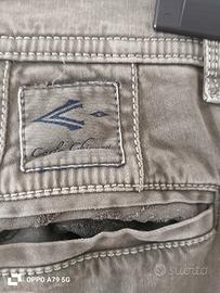 Jeans uomo Carlo Chionna, colore grigio verde, super rifinito, ricco di dettagli. Taglia 34, tessuto 98%cotone e 2%elastane, ottima vestibilità. Usati pochissimo, veramente come nuovi. Misura vita 44, lunghezza 104cm.