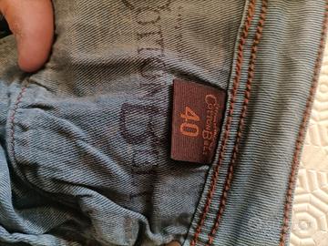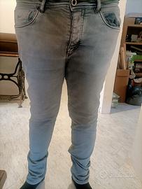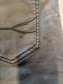 Jeans uomo di colore verde melangiato con cuciture di colore verde scuro, indossato poche volte.