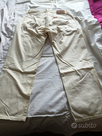 Jeans uomo Cotton Belt, colore crema chiaro con impunture a contrasto (col. senape), taglia W34, usati, anni 90, estivi, ottimo stato.