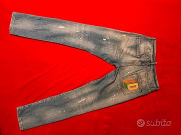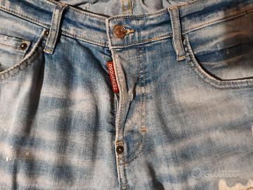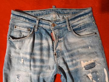 Vendo come nuovi jeans uomo Dsquared. Taglia 46. Colore azzurro. Macchie e strappi di fabbricazione. Immacolati. Tessuto morbido ed elastico, vestibilità slim-fit. Vita Jeans 40cm Lunghezza jeans 99cm Perfetti per persone sotto 1.80 e con un peso massiml di circa 78kg in giù.