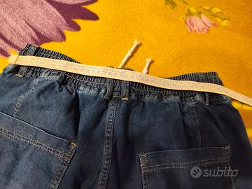 Jeans uomo con le misure nelle foto, nuovo,mai indossato. Materiale morbido, giusto per metà stagione. Ottimo anche per le persone con difficoltà di indossare le cinture,avendo un elastico molto resistente, ma c'è la possibilità di mettere la cintura.