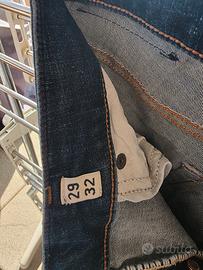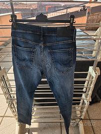 Jeans uomo blu Jack & jones, usati poco, con chiusura con bottone. Taglia 29/32 slim/glenn. Etichetta della marca sia all' interno che sul retro. Bottone con marchio. Usati pochissimo in ottimo stato.