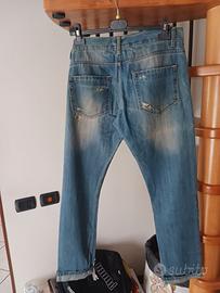 - Jeans uomo, colore celeste scolorito e invecchiato, tg.46, marca Quintessence, ottima condizione, costo 10 euro.