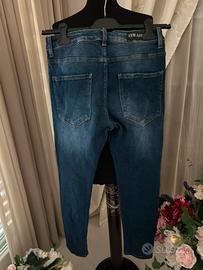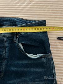 Jeans da uomo taglia 46, modello slim fit con effetto vissuto, dettagli con strappi e toppe sulle gambe. Capo usato ma pari al nuovo, senza macchie né segni di usura. Perfetto per un look casual e di tendenza.