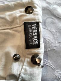 Bellissimo paio di jeans Versace colore bianco con motivo con catenelle, usato una volta.