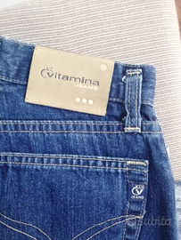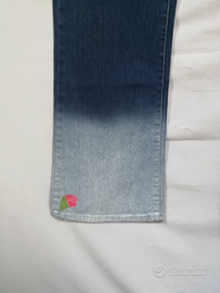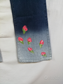 Jeans vintage leggermente svasato con decori in fondo (rose rosse su fondo bianco) Marca vitamina Mai Indossato ma senza cartellino