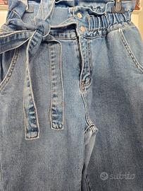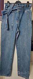 Jeans vita alta paperbag M/42 con cintura – denim
