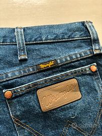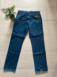 Jeans originali Wrangler da uomo, colore blu classico, 100% cotone.