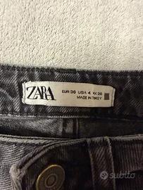 Jeans Zara color grafite con orlo grezzo e spacchi all'interno. Taglia 36 come da etichetta. Vita alta. Nessun difetto. Indossati solo un paio di volte, perfette condizioni, nessun difetto.