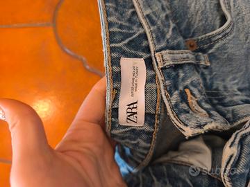 Vendo bellissimo paio di jeans ZARA color azzurro chiaro, vestibilità classica a gamba dritta. Un capo intramontabile e versatile per ogni stagione. Marca: ZARA Taglia: EUR 38 (corrisponde a una 40 italiana) Colore: Azzurro chiaro délavé (come da foto) Condizioni: Ottime, indossati pochissimo. Nessun difetto. Vestibilità: Mom fit/Straight leg. Dettagli: Chiusura con bottone e zip, passanti per cintura, 5 tasche. Made in Turkey. Disponibile per il ritiro a mano in zona Monterotondo (RM) o spedizione in tutta Italia tramite TuttoSubito.