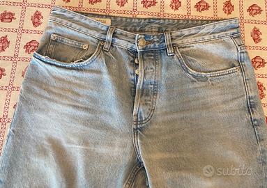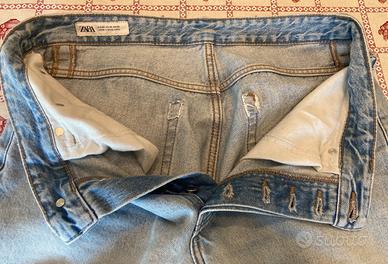 ✨ Dettagli del capo: Marca: Zara Modello: Jeans 5 tasche classico, gamba dritta/regolare (regular/straight fit), chiusura centrale a bottoni. Colore: Azzurro chiaro (Light Wash Denim). Taglia: EUR 42 / USA 32 / MEX 32 (sull'etichetta). Materiale: Denim resistente. Condizioni: Molto buone. Segnalo solo il naturale effetto "vissuto" sui bordi delle tasche (creato appositamente dal brand) e un leggero segno di usura sulla tasca posteriore destra, che si mimetizza perfettamente con lo stile del capo. 📏 Misure esatte (prese con il capo steso in piano): Vita (da lato a lato): 42 cm Lunghezza totale della gamba: 97 cm
