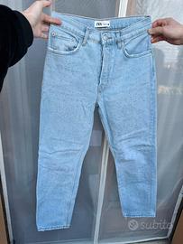 Vendo jeans Zara ZW Collection, colore denim chiaro con dettagli particolari.
