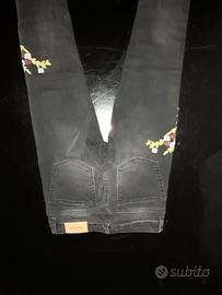 Bellissimi jeans neri firmati Zara, linea Trafaluc Denimwear. Modello unico con vivace ricamo a fiori colorati sulla gamba. Un tocco boho-chic perfetto per ogni stagione! 🌈 Marca: Zara Trafaluc 🏷️ Taglia: EUR 36 / USA 04 (Veste una 40 Italiana) 🇮🇹 Colore: Nero denim con ricami multicolore Condizioni: Ottime, tessuto resistente e ricami integri.