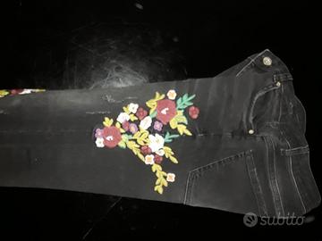 Jeans Zara Trafaluc Neri con Ricamo Floreale -