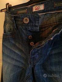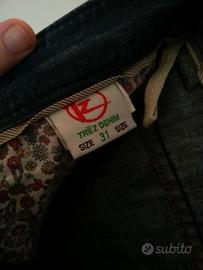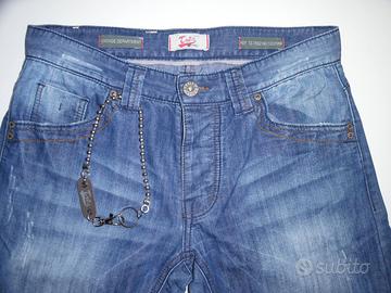 BELLISSIMI JEANS IN OTTIME CONDIZIONI+CATENA PER PORTAFOGLIO CON MOSCHETTONE E ANELLO DEI PORTA CHIAVI DA LEGARE AL PORTAFOGLIO E AL JEANS O PER LEGARE LE CHIAVI AL JEANS E NON PERDERLE(2° foto)Usati Solo 2/3 Volte e Lavati(Comprati Circa 12 Anni Fa Poi Il Mio Ragazzo Ha Cambiato Taglia e Sono Rimasti Nell'Armadio)DA UOMO,ORIGINALI MARCA"TREZ DENIM"le foto in cui i jeans sono più scuri è perchè son senza flash perchè dovevo farle da vicino,quelle in cui sono più chiari sono con il flash(il colore reale è quello con il flash in cui sono più chiari),TAGLIA 31=45 ITALIANA,NON ELASTICIZZATI,Con 5 Tasche Classiche Jeans,Chiusura a 3 Bottoni Tutti Con Scritta Trèz Denim Sopra In Rilievo(bottoni in metallo)Con Passanti Per Cintura,Con Toppa Dietro Che Fa Da Passante Cintura Con Scritta"TREZ DENIM(Vintage Department)"e La"T & Z"In Metallo Applicate(JEANS UGUALI A NUOVI E PERFETTI L'UNICO PICCOLO "DIFETTO" è CHE NEL PORTARLI 2/3 VOLTE con la cintura E NEL LAVARLI 2/3 PUNTI DI CUCITURA SULLA TOPPA DIETRO CHE LA CUCE AL JEANS SI SONO SCUCITI:6° FOTO(è facile rimediare con 2/3 punti con la macchina da cucire/a mano con il filo dello stesso colore non si noterà nulla),Lavabili In Lavatrice.