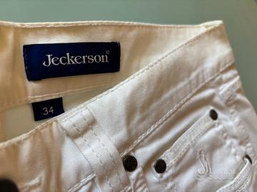 Jeckerson bianco in tessuto. Taglia 34 (corrisponde a 48/50 italiana). Ottimo stato. Vendo a 40€