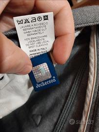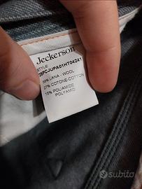 Splendido pantalone Jeckerson 5 tasche in lana/cotone morbido e caldo con toppe frontali in panno grigio chiaro a contrasto. Eleganti e casual allo stesso tempo. Pantalone con orlo effettuato su altezza 1.75cm. Taglia 32.