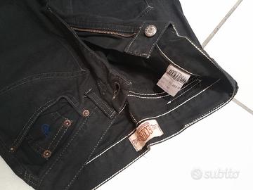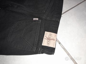 Pantaloni morbidi colord nero simil jeans Taglia 42 unisex uomo donna Larghezza in vita 34 cm girovita 74 cm lunghezza 107 cm