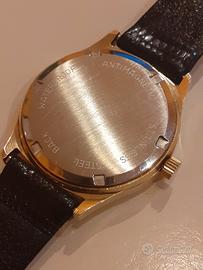 Stupendo orologio Jeder Mann (marca d' orologeria ormai scomparsa), probabile periodo anni 70, movimento Swiss made a carica manuale FHF 36 (fabrique d' orologerie de Fontainmelon) , 17 rubini , antichoc, antimagnetic, cassa da 34 mm placcata in oro giallo 10 micron (dicitura incisa ad ore 6), quadrante bianco con numeri romani, fondello a vite, vetro minerale (no plastica), anse da 18mm, tutto in condizioni NOS.