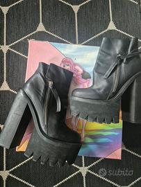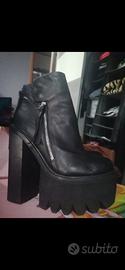 tronchetto alto con plateau carrarmato di pelle nera con zip laterale alte 15cm circa ma comodissime ottime condizioni messe pochissime volte pagate 250 euro nuove.