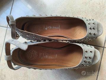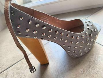 Jeffrey Campbell originali, mai usate, numero 38 vintage, prezzo originale 140 euro, tacco 12 cm colore grigio con piccole borchie, con scatola e custodia in tessuto originale e borchie di riserva, tutto come appena acquistato