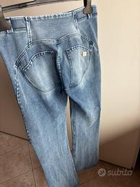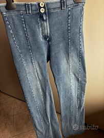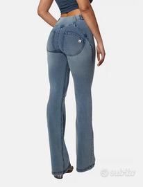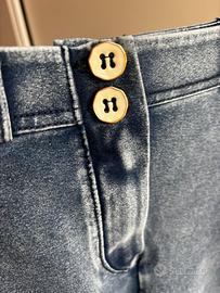 Stupendi pantaloni push up WR.UP® dall'elegante design a zampa sottolineato dalle cuciture decorative sulle lunghezze. Sono realizzati in jersey effetto denim bi-elastico un tessuto morbido e confortevole che segue con naturalezza i movimenti ed è ecosostenibile perché ottenuto da cotone organico ed elastan riciclato privo di agenti chimici e tinture tossiche. Questi pantaloni sono perfetti per sottolineare le forme femminili grazie all'effetto shaping dato dalla tecnologio WR.UP® brevettata da Freddy che si unisce alla vita alta e alle diverse cuciture che percorrono la lunghezza della gamba mettendola in risalto. Caratteristiche:- Vita alta con chiusura a due bottoni smaltati e zIp Vestibilità flare stretta su vita e fianchi e a zampa sul fondo Lunghezza regular Doppia impuntura laterale decorativa sulle lunghezze Cameo in metallo smaltato con logo sulla tasca posteriore Tessuto Organici Denim Jersey Stretch Circonferenza vita 74 cm Lunghezza totale 107 cm Prezzo di vendita 155€ Nuovissimi