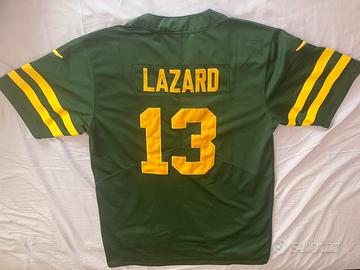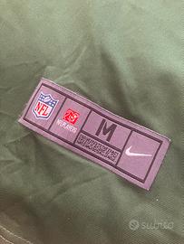 Vendo per misura non adatta a me, usata una volta e lavata in lavatrice una volta. Numero, nome giocatore e logo Nike sulle maniche cuciti. Logo NFL sul collo traslucido.