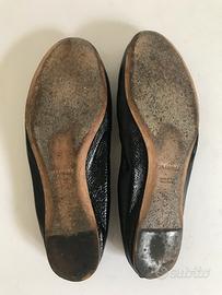 Ballerine Jil Sanders in pelle lucida nere. Elastico dietro, interno in pelle bianca. Misura 37,5. Indossate, ottimo stato. Panno incluso no scatola.