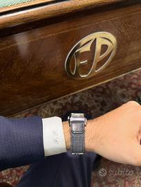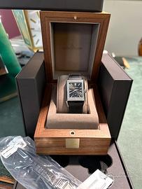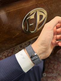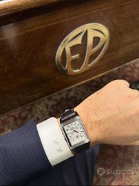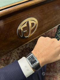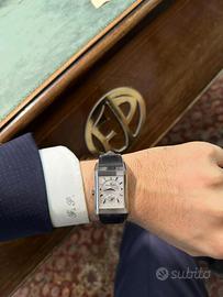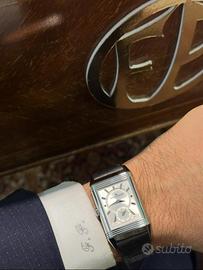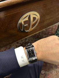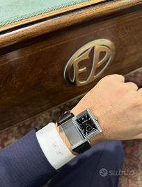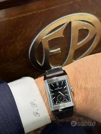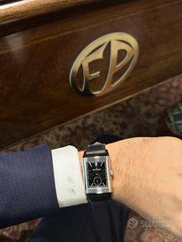 Con il suo quadrante nero, l’orologio Reverso Tribute Duoface Small Seconds fa rivivere i quadranti colorati creati dalla Maison a partire dal 1931, che all’epoca rappresentavano una scelta estetica audace. In questa versione in acciaio, questo ritorno è il segno di una modernità affermata. Sul fronte, gli elementi emblematici del Reverso – scanalature, indici applicati, lancette Dauphine, piccoli secondi – di colore argento risaltano particolarmente sul quadrante nero spazzolato a raggi di sole. Sul retro, la regolazione del secondo fuso orario avviene grazie a un piccolo pulsante posto sul lato della cassa una volta che questa è stata capovolta. L’orologio è dotato di due bracciali disegnati da Casa Fagliano: il primo in pelle nera, il secondo nello stesso colore, in pelle e tela. Edizione limitatissima. Listino attuale 15100€. Ottimo per fare o per farsi un regalo e come investimento. Per gli amanti dell’esclusività.