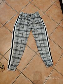 Pantaloni di tuta a quadretti bianchi e neri Shein, con righe sul laterali per tutta la gamba. Non sono felpati all'interno. Cotone e poliestere. Taglia S. Ragazzo/uomo. Nuovi, senza cartellino, sono stati solo lavati.