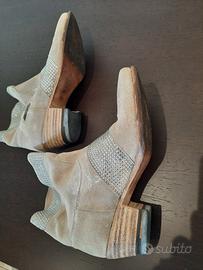 Stivaletti Richmond in camoscio beige chiaro, modello Camperos in vero cuoio n36 con inserti luccicanti (piccole pietre)