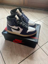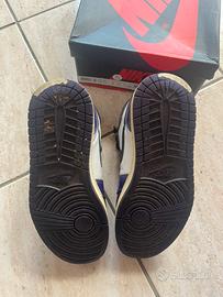 jordan viola in buone condizioni e con scatola e accessori originali, doppi lacci e shield antipiegatura per la punta, leggermente rovinate sotto la suola