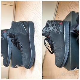 Sneakers Jordan modello 1 flight 3 BG, n. 39, colore nero con logo rosso, complete di scatola originale e lacci di ricambio.