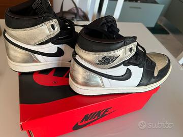 Vendo jordan 1 high argento e nere. Le scarpe sono usate e presentano segni di normale usura, guardare foto. Numero 40.5 possibilità di spedire o ritiro a ladispoli