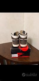 vendo le mie care jordan 1 tenute in maniera impeccabile come si può vedere, si vede solo qualche piccolo segno di usura "le pieghe" ma ancora utilizzabili. la scarpa possiede ancora tutti e tre i suoi lacci originali "rosa, bianco e nero"