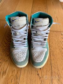 Vendo queste iconiche Air Jordan 1 Retro High OG Turbo Green, perfette per gli amanti dello streetwear e collezionisti! Le scarpe sono in buone condizioni, come si può vedere dalle foto.