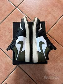jordan 1 low colore verde oliva, nero e bianco, taglia 38.
