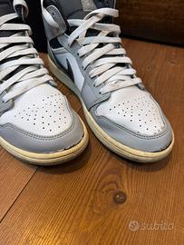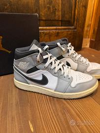 Vendo scarpe Jordan 1 Mid antracite grigio fumo chiaro, usate con evidenti difetti visibili dalle foto dati dall'usura. ORIGINALI Pagate 173€ laglia 42,5 EU 9 US