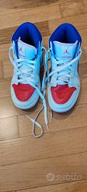 Jordan 1 mid RM Easyon bambino bianche, rosse e blu, autunno-inverno, usate poco in ottime condizioni. Numero 36,5 EUR / UK 4