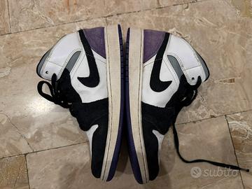 scarpe incondizioni OTTIME usate pochissimo. hanno mantenuto la stessa forma, pochissime pieghe quasi assenti e dettagli in scamoscio viola e neri. sono adatte alla pioggia